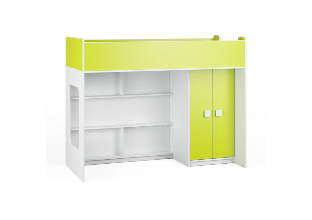 Внизу располагается игровая зона с полками – свой уголок для ребенка.