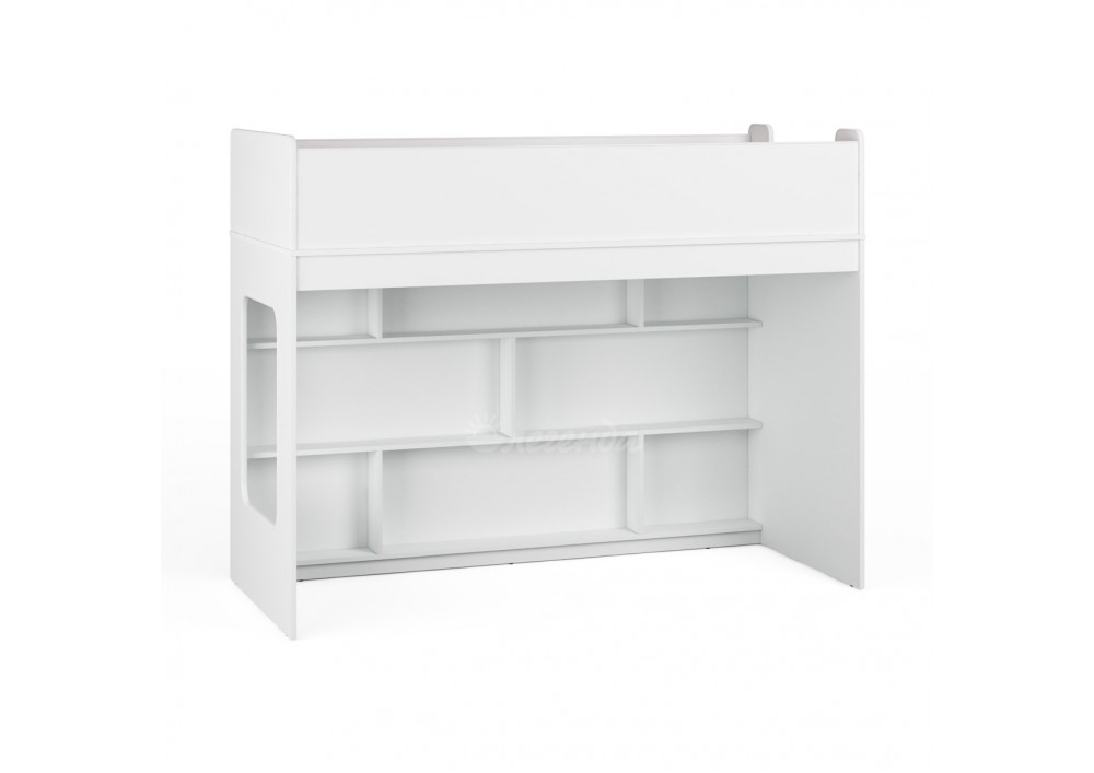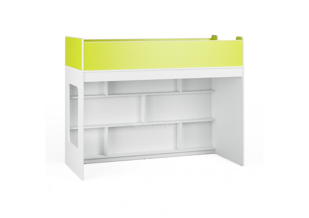 Внизу располагается игровая зона с полками – свой уголок для ребенка.