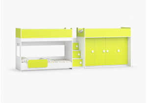 Для троих детей необходимо втрое больше вещей. Количество одежды, игрушек, учебных принадлежностей, постельного белья – всё надо умножать на три. Поэтому хорошим решением будет приобретение комплекта кроватей с мебелью для хранения. В комплект могут входить полки, столы, шкаф, ящики. Вам остается только решить, какие именно модули нужны для вашего помещения.